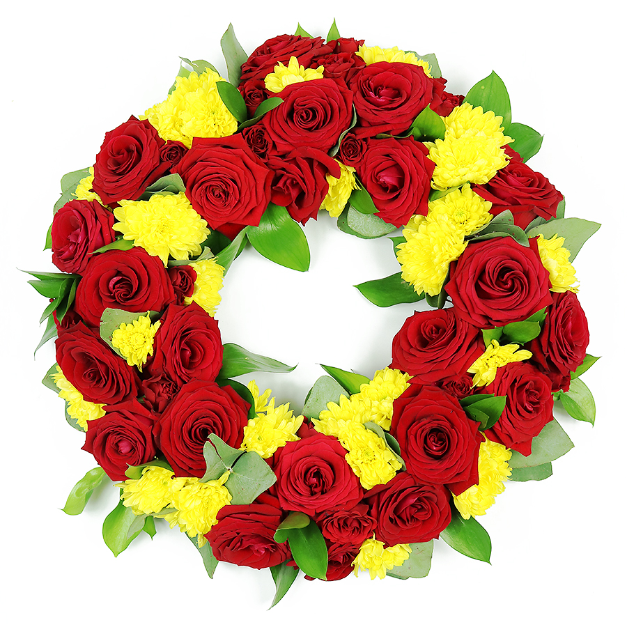 Honor the everlasting spirit of your loved one with our elegant wreath, symbolizing the eternal cycle of life. Each memorial arrangement is carefully handcrafted by our skilled florists, featuring a vibrant mix of blooms for a full and exquisite display. Perfect for funeral or memorial services, this wreath serves as a beautiful symbol of remembrance.